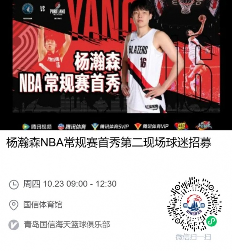 观赛派对 | 青岛国信邀你共聚,见证杨瀚森NBA首秀!