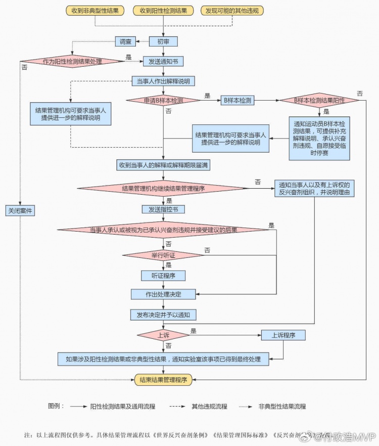 自CBA外援兴奋剂违规被CADA在6月底公布后,其实我多次对兴奋剂检测结果管理流程的科普,还晒出了兴奋剂检测结果呈阳性后的结果管理程序图,旨在说明一点:反兴奋剂检测流程都非常重视程序正义,需要逐一甄别检测呈阳性的原因,整个结果管理程序很复杂、根本没那么快。